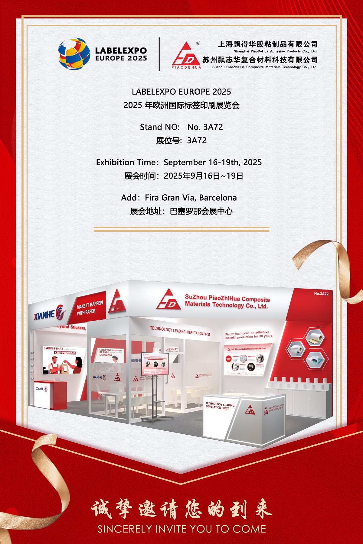 SuZhou PiaoZhiHua Composite Materials Technology Co., Ltd. มีความภูมิใจที่จะประกาศการมีส่วนร่วมในงาน Labelexpo Europe 2025 ซึ่งเป็นงานแสดงสินค้าระดับนานาชาติชั้นนำสำหรับการพิมพ์ฉลากและบรรจุภัณฑ์ ซึ่งจะจัดขึ้นระหว่างวันที่ 16 ถึง 19 กันยายน 2025 ที่ Fira Gran Via ในเมืองบาร์เซโลนา ประเทศสเปน ในฐานะผู้ผลิตวัสดุฉลากติดด้วยตนเองประสิทธิภาพสูงที่เชื่อถือได้ พร้อมด้วยประสบการณ์ในอุตสาหกรรมมานานกว่าสามทศวรรษ Piaozhihua จะจัดแสดงกลุ่มผลิตภัณฑ์นวัตกรรมที่บูธ หมายเลข 3A72 - นิทรรศการจะนำเสนอโซลูชั่นกาวขั้นสูงที่ออกแบบมาสำหรับการใช้งานที่หลากหลายในสินค้าอุปโภคบริโภค โลจิสติกส์ และภาคอุตสาหกรรม